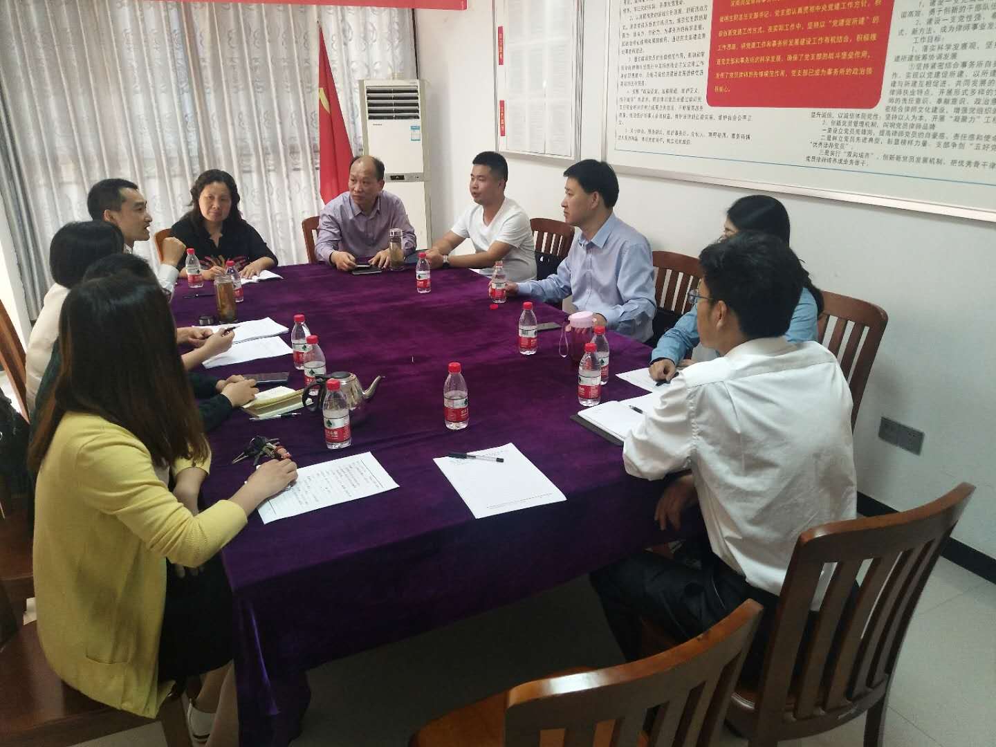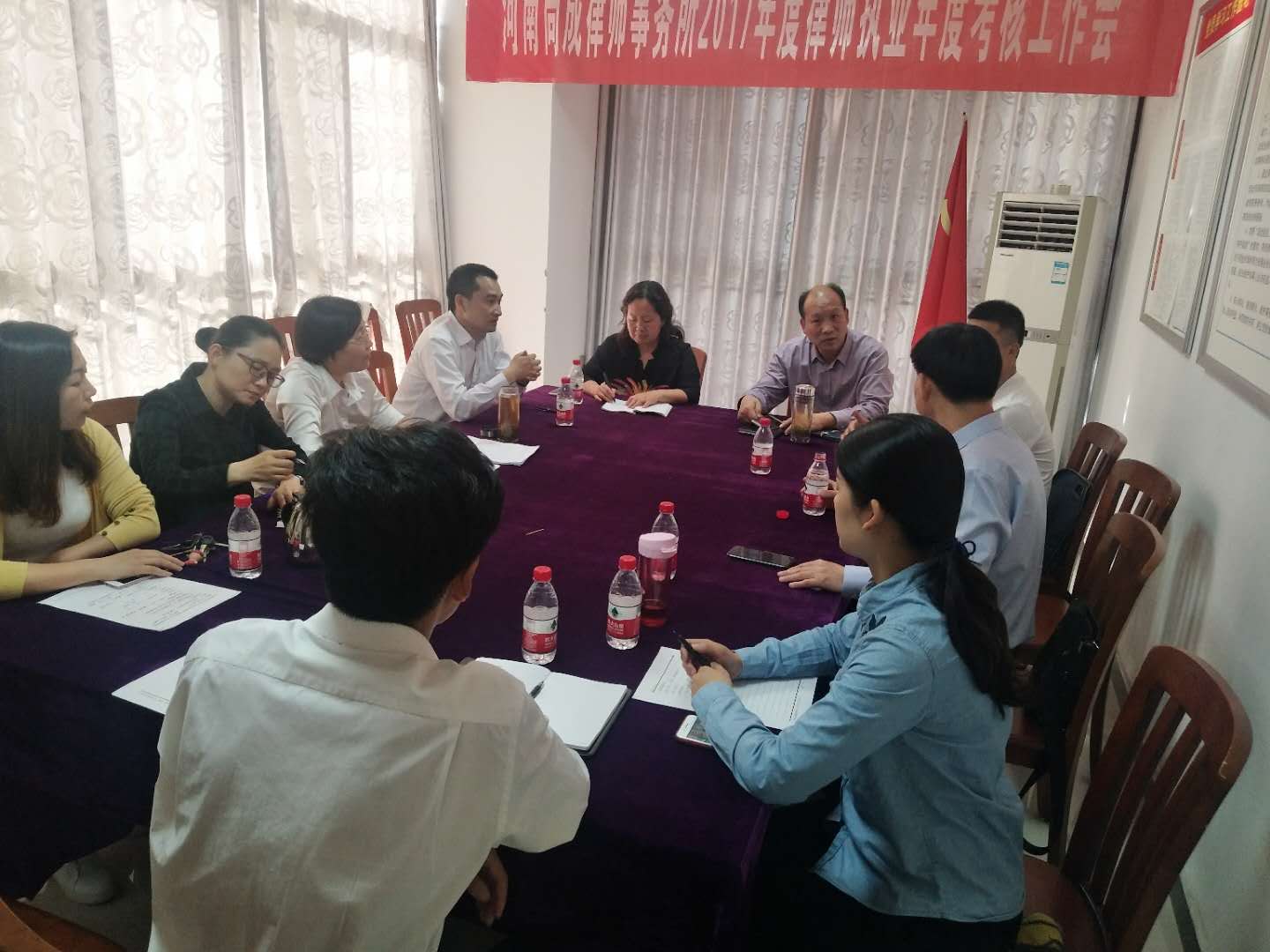 2018年5月3日下午,市司法局律师科王科长、方科长和高主任等一行人顶着酷暑天气来到河南尚成律师事务所检查、指导并听取我所2017年年度工作情况,河南尚成律师事务所梁明升主任、权利华主任、冯鹏主任及在所律师参与了检查工作。