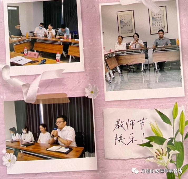 为弘扬律师行业尊师重道的优良传统,体现青年律师知恩于心、感恩于行的良好风尚,9月9日下午,在第38个教师节来临之际,河南尚成律师事务所积极响应省、市律师协会的号召,通过举办一场别开生面的“感拜师恩,携手同行”座谈会,让指导老师和青年律师齐聚一堂,共庆教师、中秋双节。