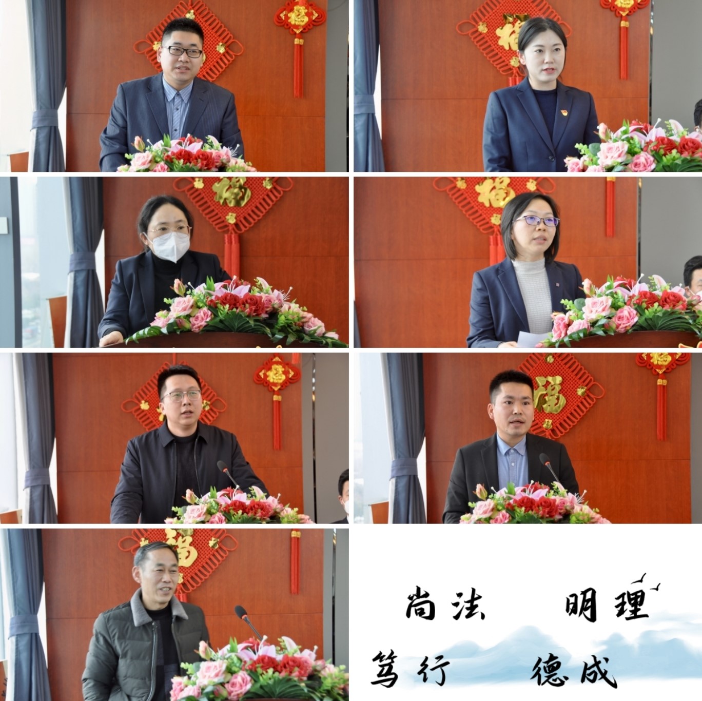 优秀律师赵志鹏、优秀党员黄晓沛、办案能手张凤君、公益标兵李莎莎、新星奖臧奕威、优秀实习律师梁豪、优秀行管、财务人员陈全福作为受表彰代表上台发言